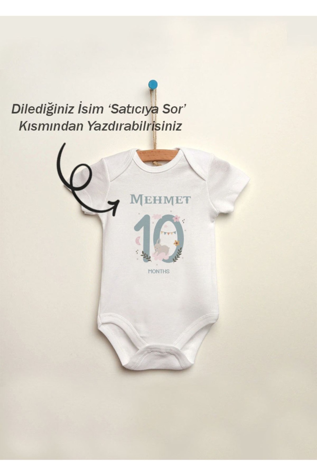 10 Aylık İsme Özel İsimli Baskılı %100 Pamuklu Çıtçıtlı Bebek Body Zıbın Atlet Tulum