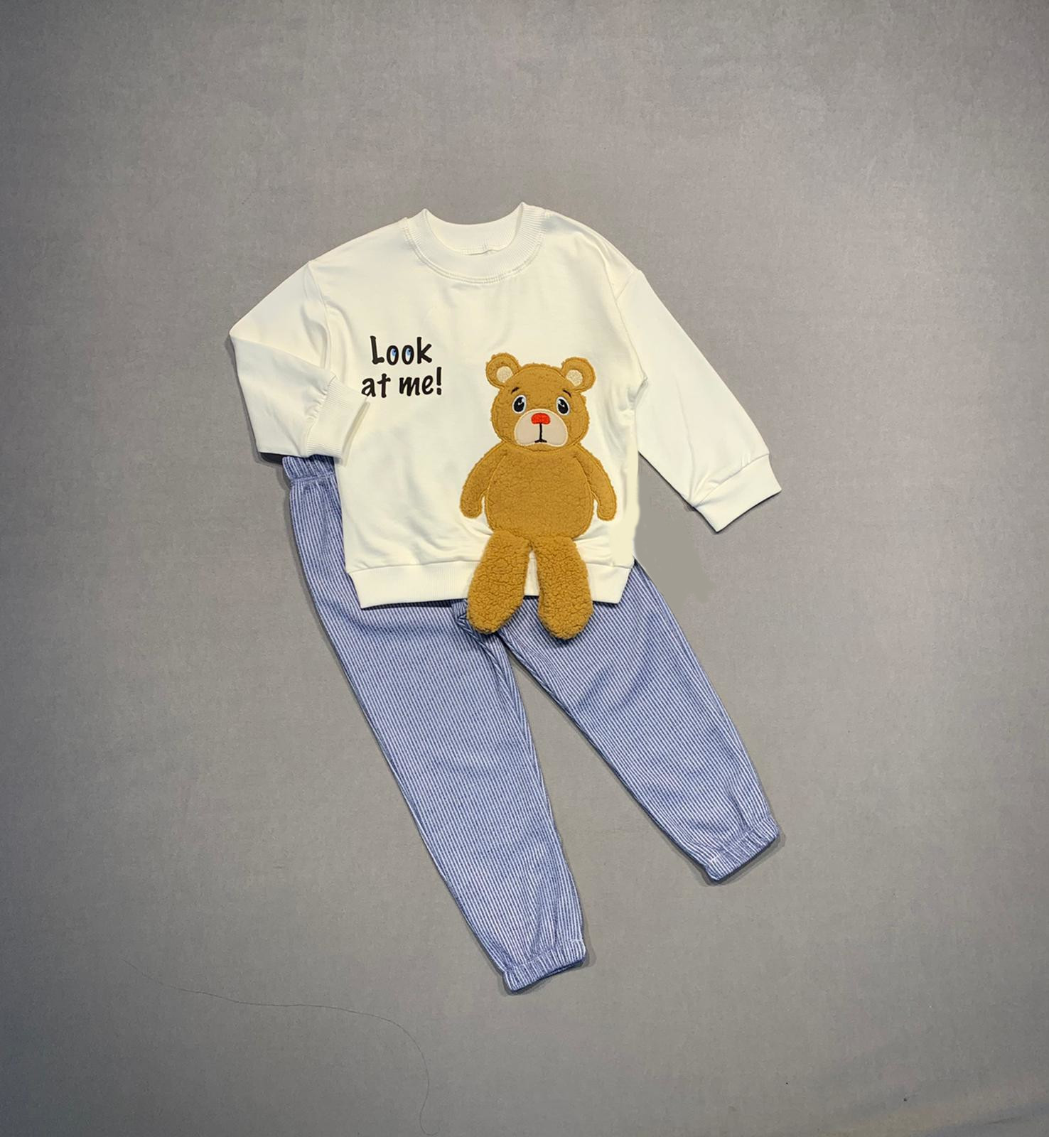 2-3-4 Yaş Ayıcık Sallanan Ayak Desenli Likra Penye Kumaş Sweat Pantolonlu Kız Erkek 2li Çocuk Takımı