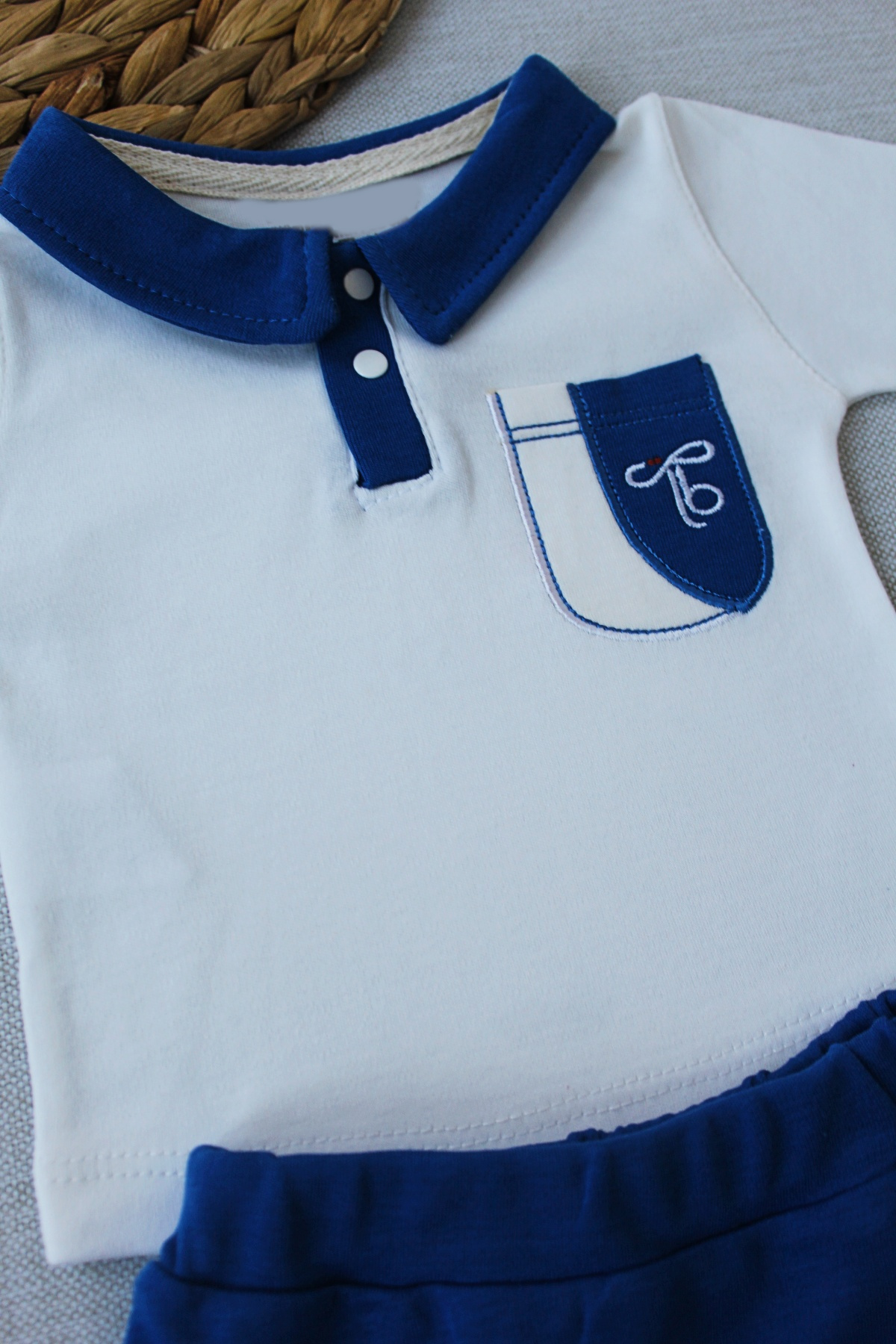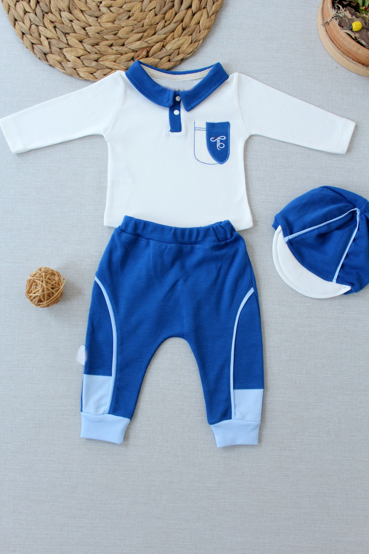 3-6 6-9 9-12 Ay Efendi Nakışlı Cep Şapkalı Uzun Kollu Sweat 3lü Erkek Bebek Takımı