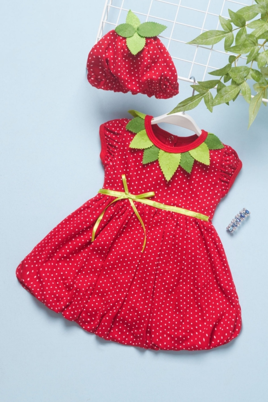 3-6-9 Ay Çilek Bebekler Penye Kumaş Kısa Kol Bebek Elbisesi