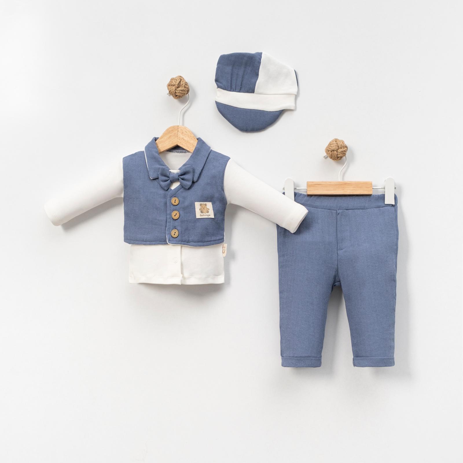 6-9-12-18 Ay Yelek Detaylı Kasketli Uzun Kollu Mevsimlik 3 Lü Erkek Takımı