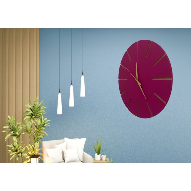 Ahşap Minimal Dekoratif Duvar Saati - 33x33 cm Fuşya