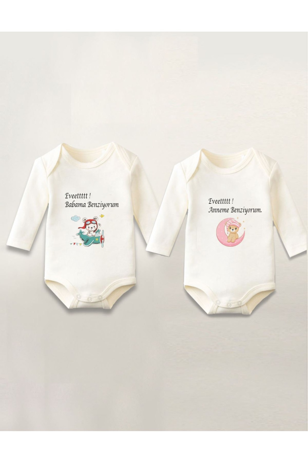 Anne Baba Baskılı 2'li Pamuklu Uzun Kollu Çıtçıtlı Bebek Body Zıbın Atlet Tulum