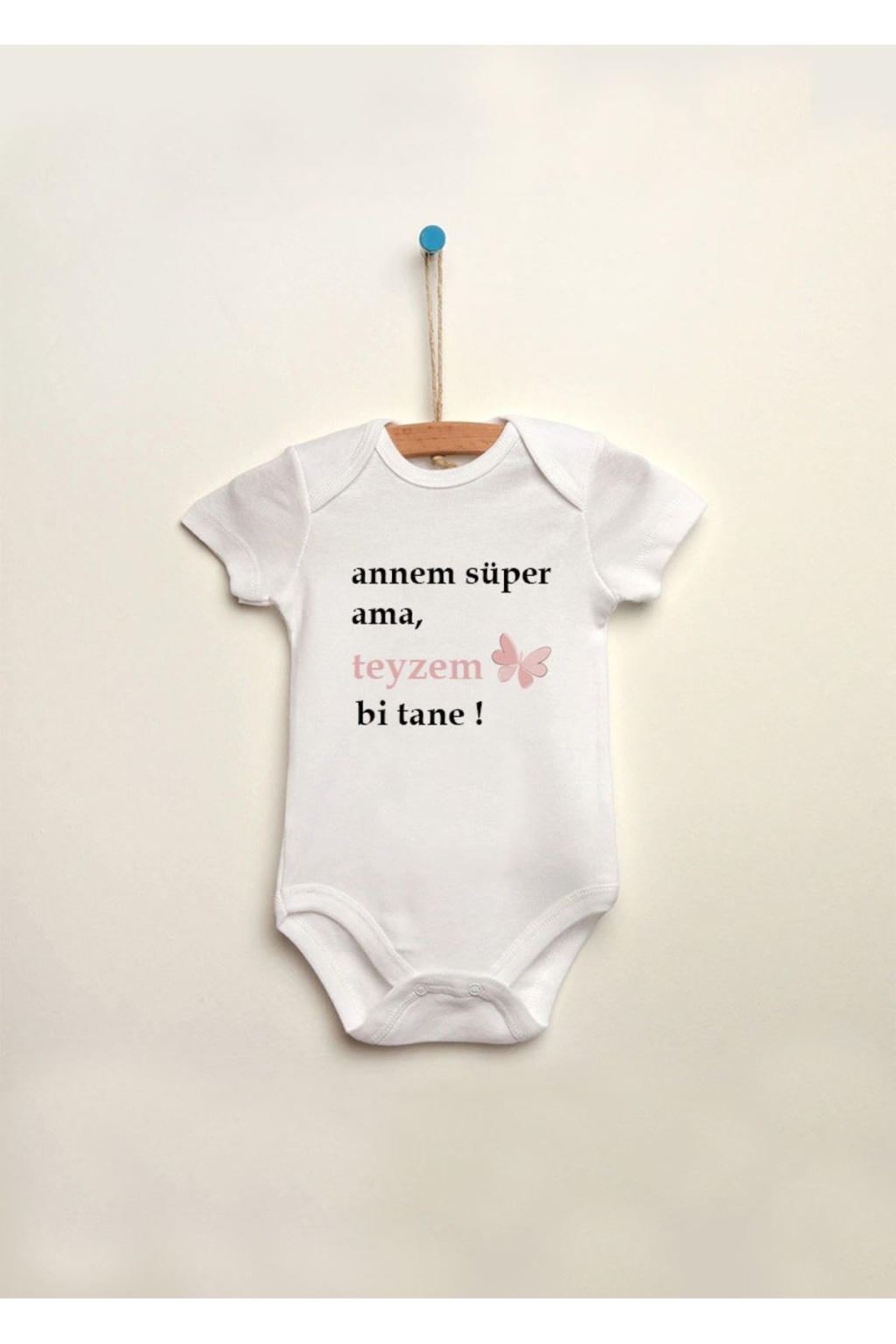 Annem Süper Ama Teyzem Bi Tane Baskılı %100 Pamuklu Çıtçıtlı Bebek Body Zıbın Atlet Tulum