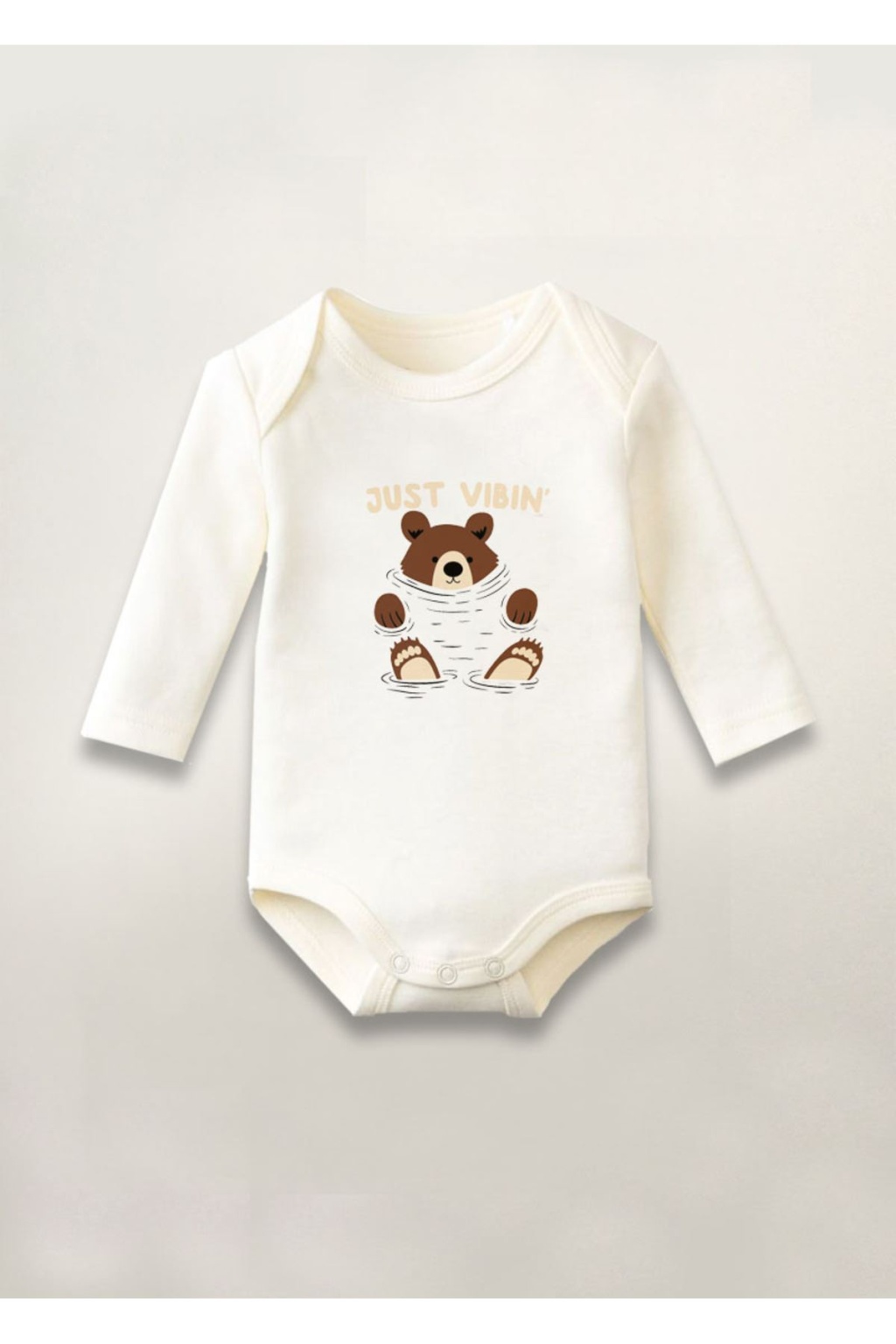 Ayıcık Ayı Baskılı Pamuklu Uzun Kollu Çıtçıtlı Bebek Body Zıbın Atlet Tulum