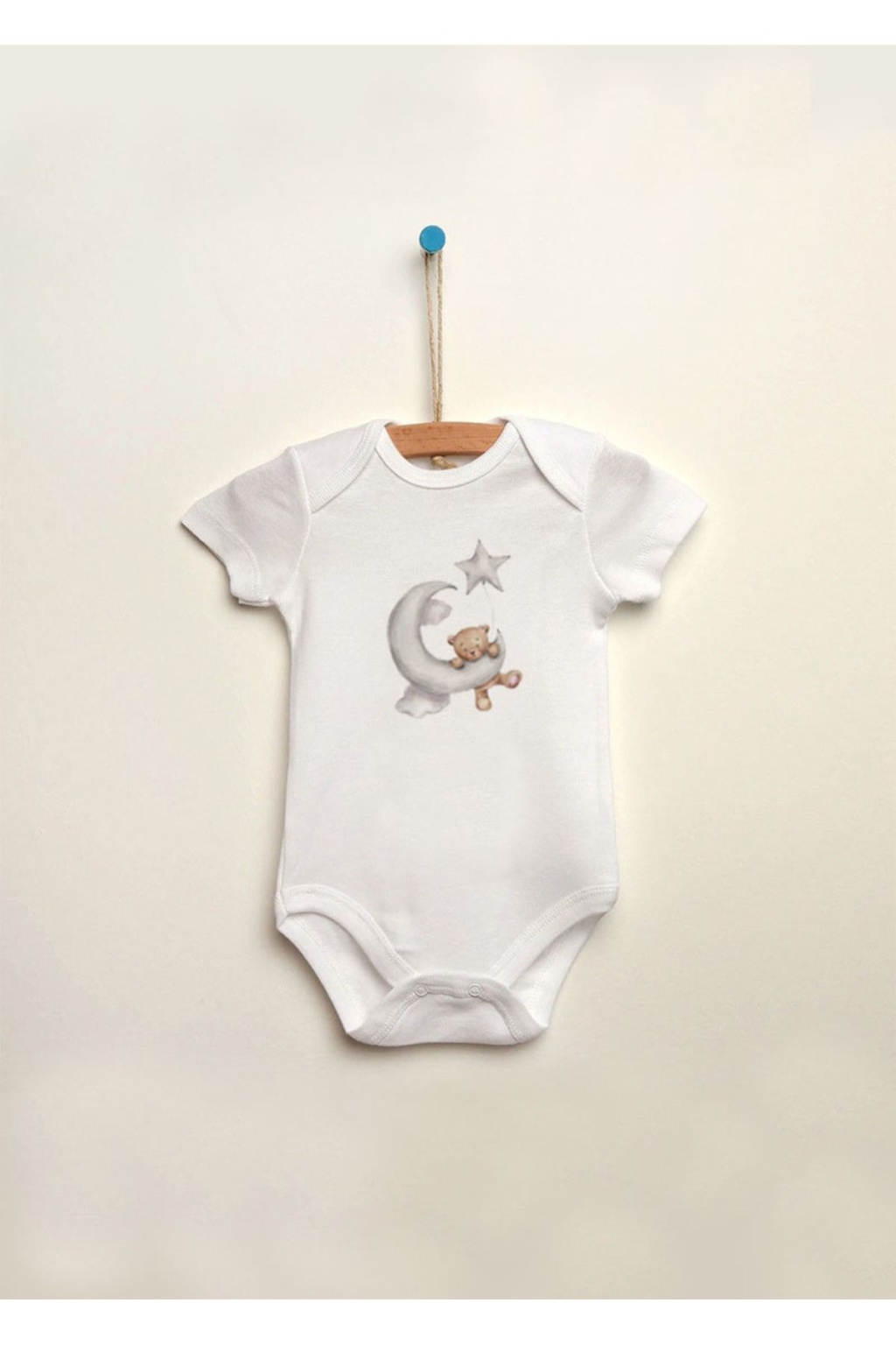 Ayıcık Bear Ay Yıldız Baskılı %100 Pamuklu Çıtçıtlı Bebek Body Zıbın Atlet Tulum