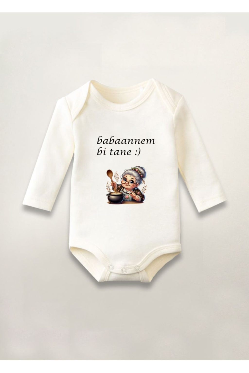 Babaannem Bi tane Baskılı Pamuklu Uzun Kollu Çıtçıtlı Bebek Body Zıbın Atlet Tulum