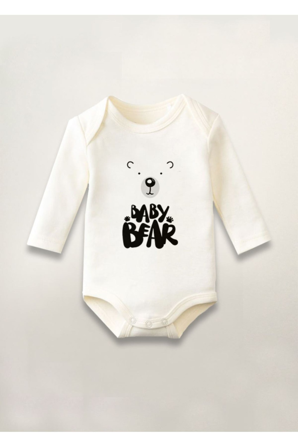 Baby Bear Baskılı Pamuklu Uzun Kollu Çıtçıtlı Bebek Body Zıbın Atlet Tulum