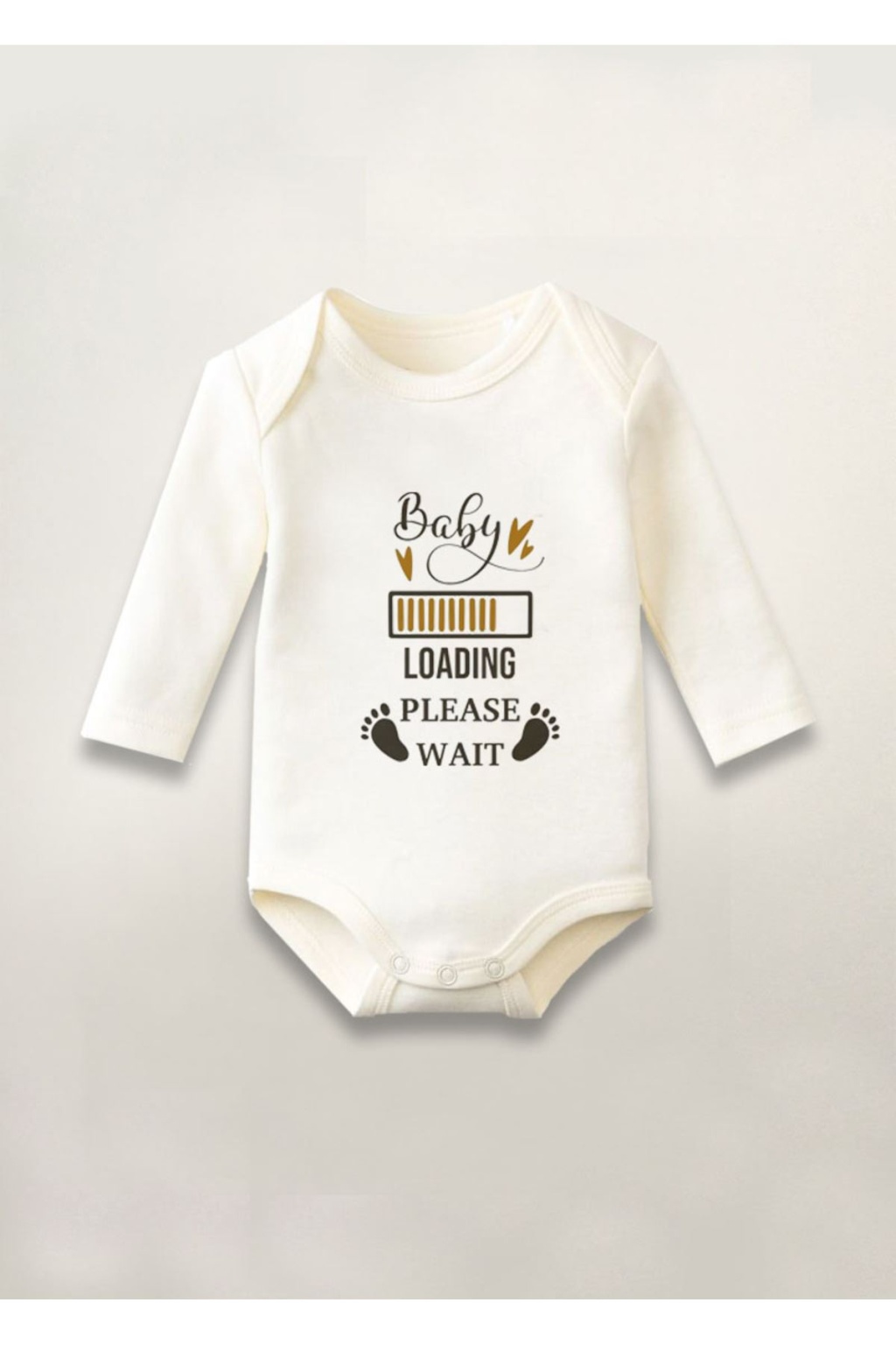 Baby Loading Wait Baskılı Pamuklu Uzun Kollu Çıtçıtlı Bebek Body Zıbın Atlet Tulum