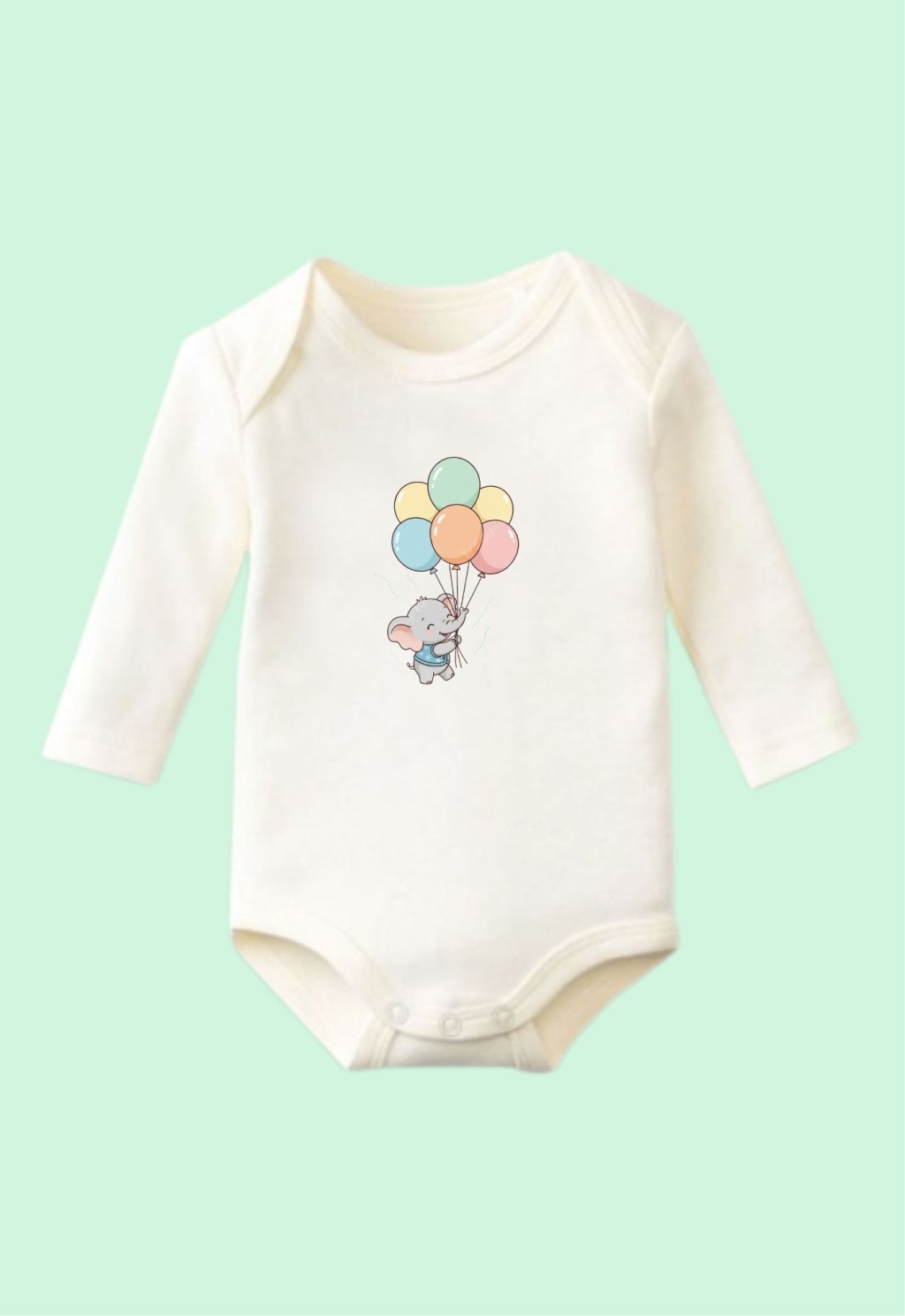 Baskılı Zıbın Balonlu Fil Tasarımlı Unisex Çıtçıtlı Beyaz
