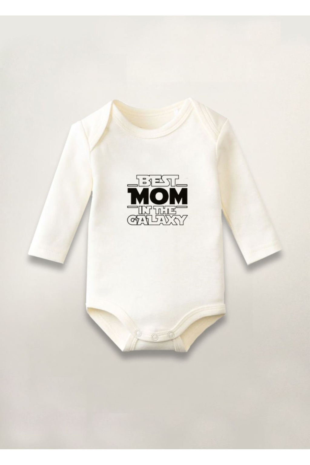 Best Mom İn The Galaxy Baskılı Pamuklu Uzun Kollu Çıtçıtlı Bebek Body Zıbın Atlet Tulum