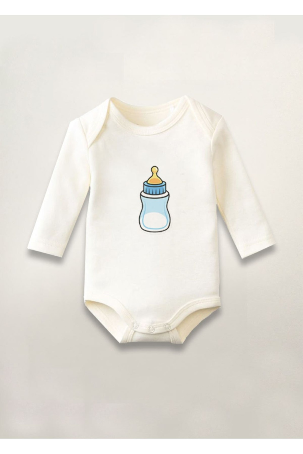Biberon Baskılı Pamuklu Uzun Kollu Çıtçıtlı Bebek Body Zıbın Atlet Tulum