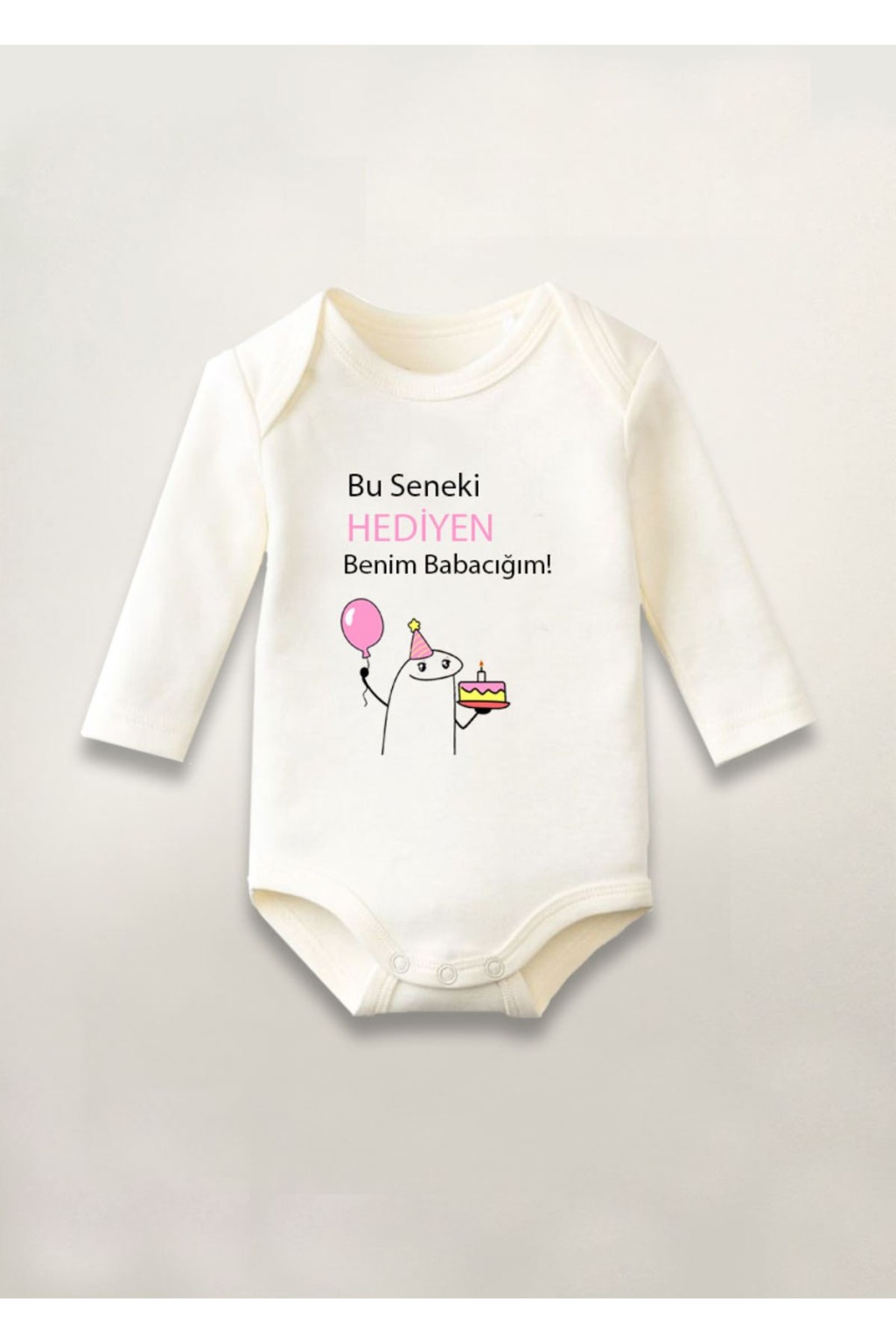 Bu Seneki Hediyen Benim Baskılı Pamuklu Uzun Kollu Çıtçıtlı Bebek Body Zıbın Atlet Tulum