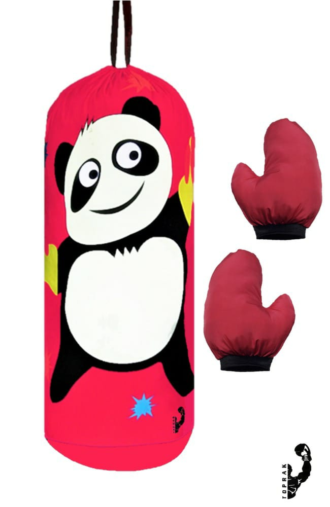 Çocuk Boks Kum Torbası Eldiven Dahil 2-6 Yaş Panda Pembe