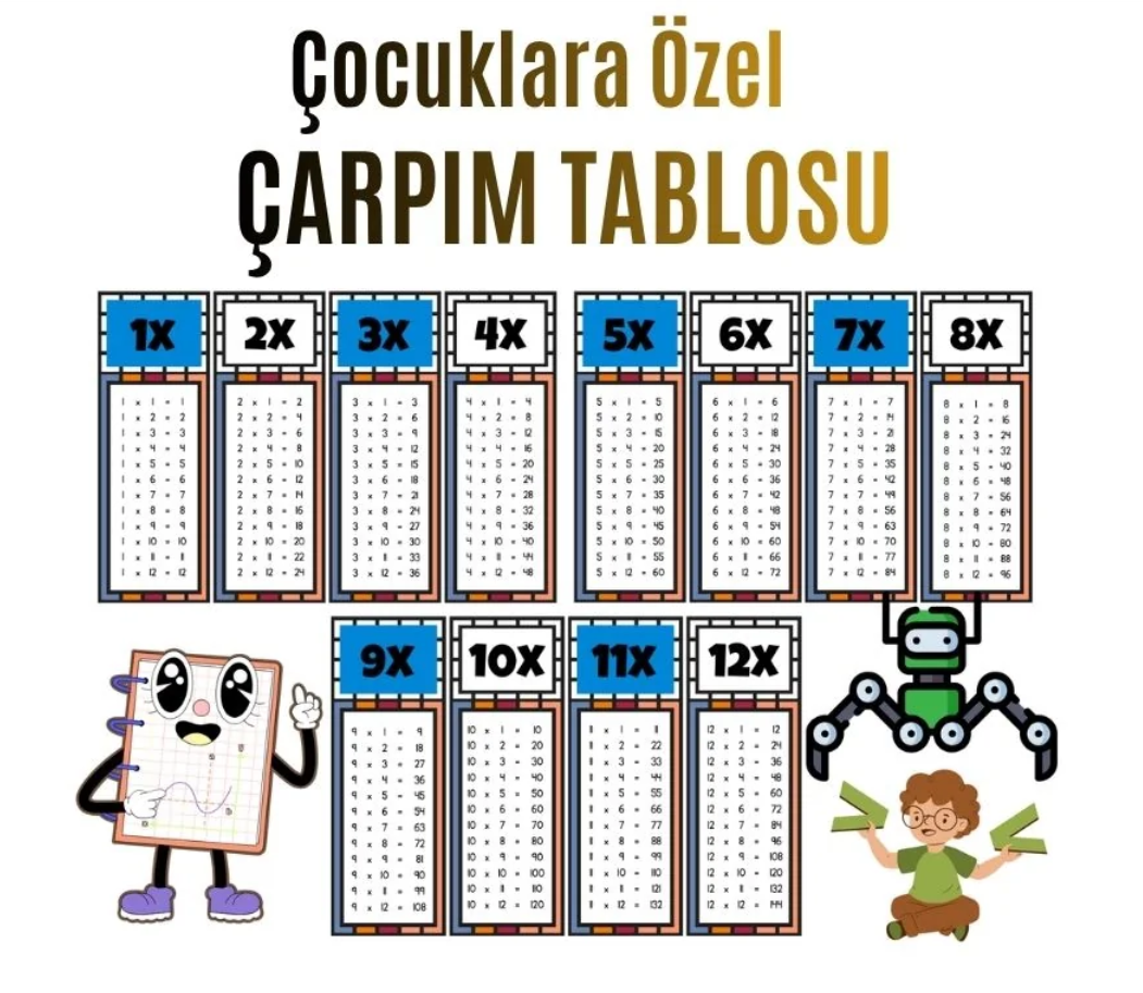 Matematik eğitimi artık çok daha eğlenceli ve kolay! Eğlenceli Çarpım Tablosu Afişi , çocukların 12'ye kadar çarpım hikayelerini keyifle öğrenebilecekleri renkli ve dikkat çekici bir yapıya sahiptir.