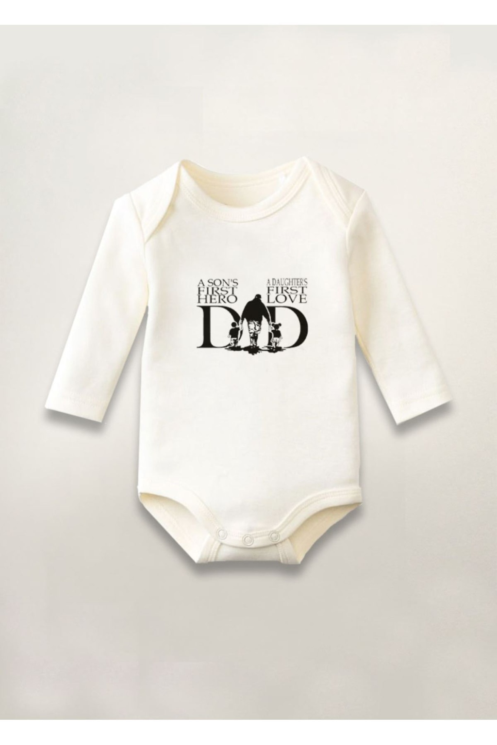 Dad Baskılı Pamuklu Uzun Kollu Çıtçıtlı Bebek Body Zıbın Atlet Tulum