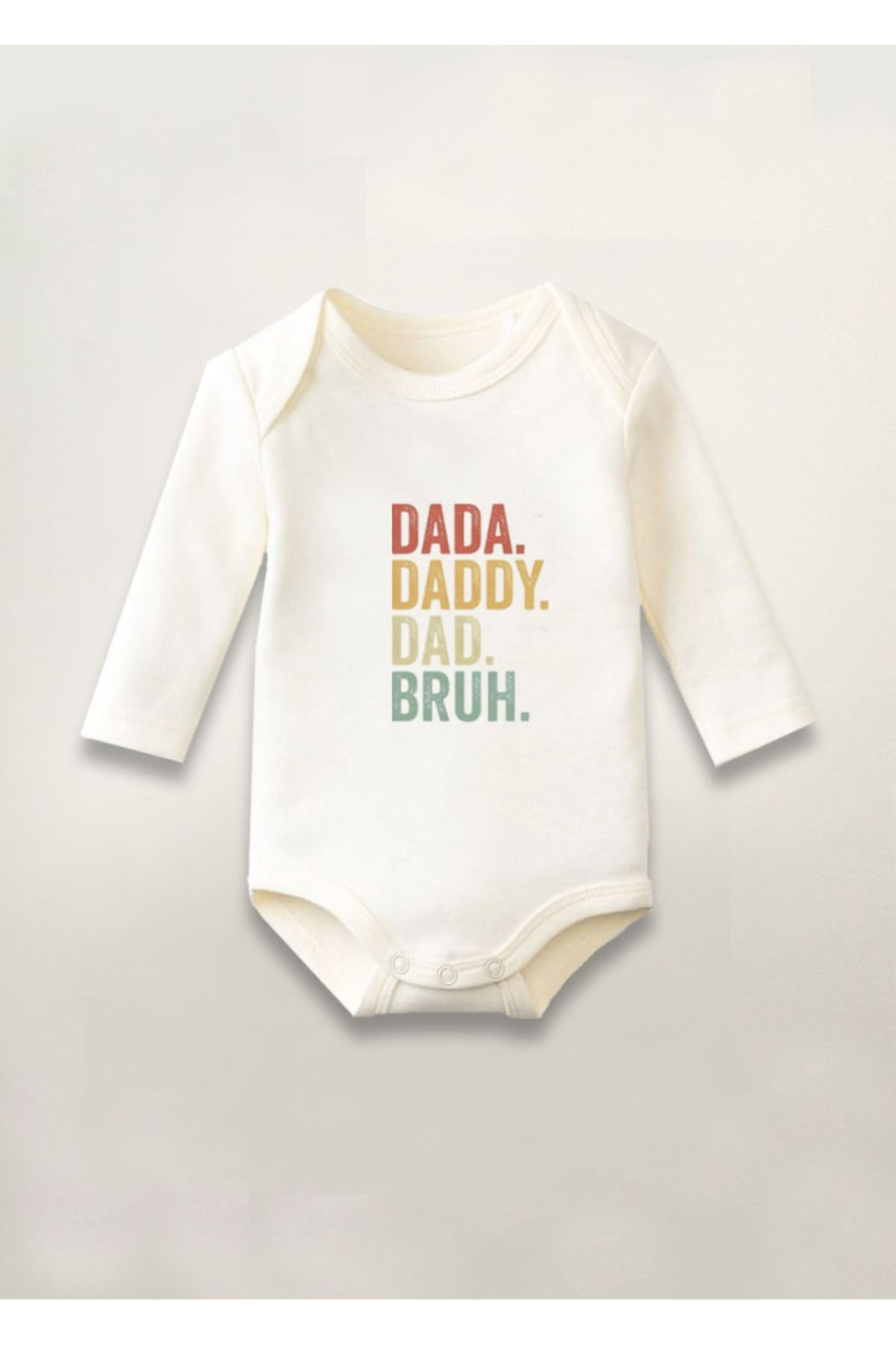 Dady Dad Bruh Baskılı Pamuklu Uzun Kollu Çıtçıtlı Bebek Body Zıbın Atlet Tulum