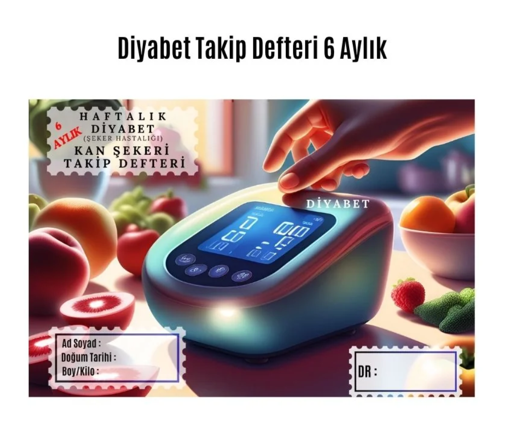 Diyabet Ölçüm Takip Çizelgesi Defteri A Kalite Özel Tasarım 6 Aylık A6 Boyut Yüksek Motiveli