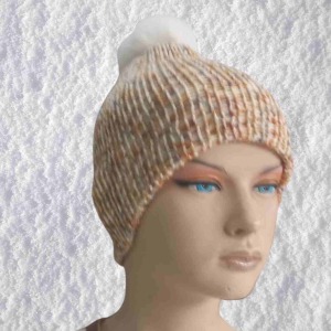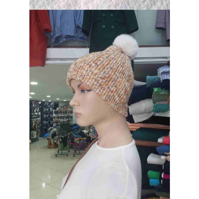 El Örgüsü Doğal Yün ve Akrilik Karışımlı Sıcacık Kış Beresi Açık Kahve Karışımlı Renk