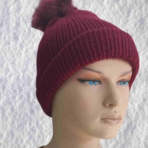 El Örgüsü Doğal Yün ve Akrilik Karışımlı Sıcacık Kış Beresi Bordo Renk