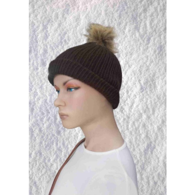 El Örgüsü Doğal Yün ve Akrilik Karışımlı Sıcacık Kış Beresi Kahverengi Renk