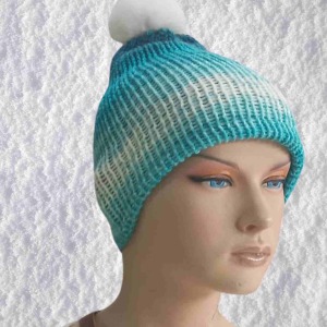 El Örgüsü Doğal Yün ve Akrilik Karışımlı Sıcacık Kış Beresi Mavi Karışık Renk