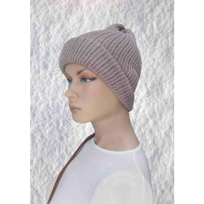 El Örgüsü Doğal Yün ve Akrilik Karışımlı Sıcacık Kış Beresi Vizon Renk