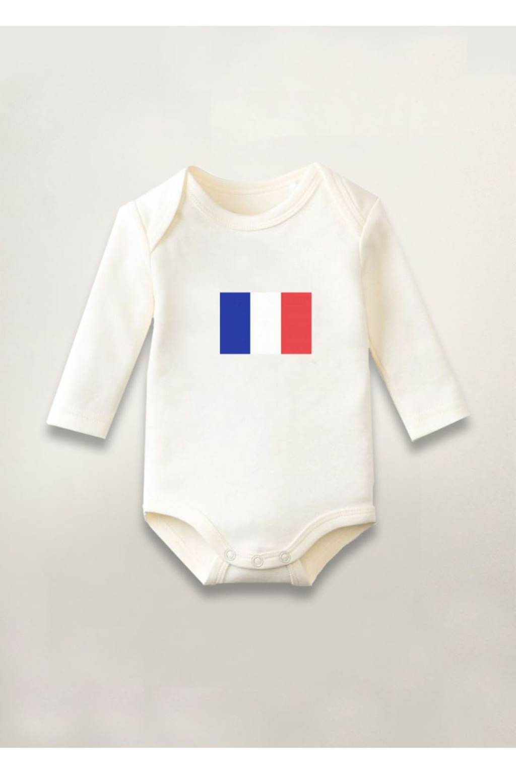 Fransa Bayrağı Baskılı Pamuklu Uzun Kollu Çıtçıtlı Bebek Body Zıbın Atlet Tulum