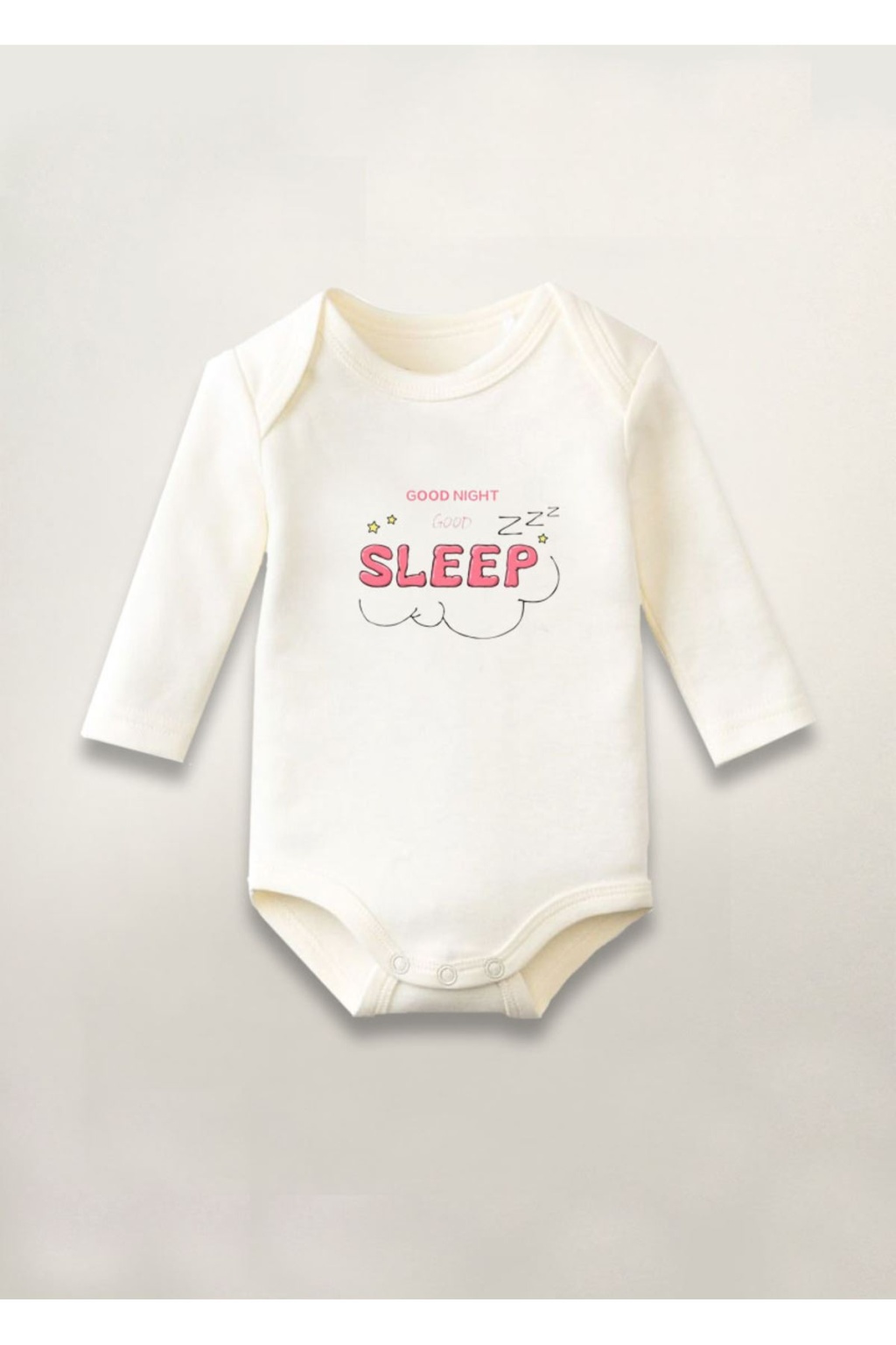 Good Night İyi Geceler Baskılı Pamuklu Uzun Kollu Çıtçıtlı Bebek Body Zıbın Atlet Tulum