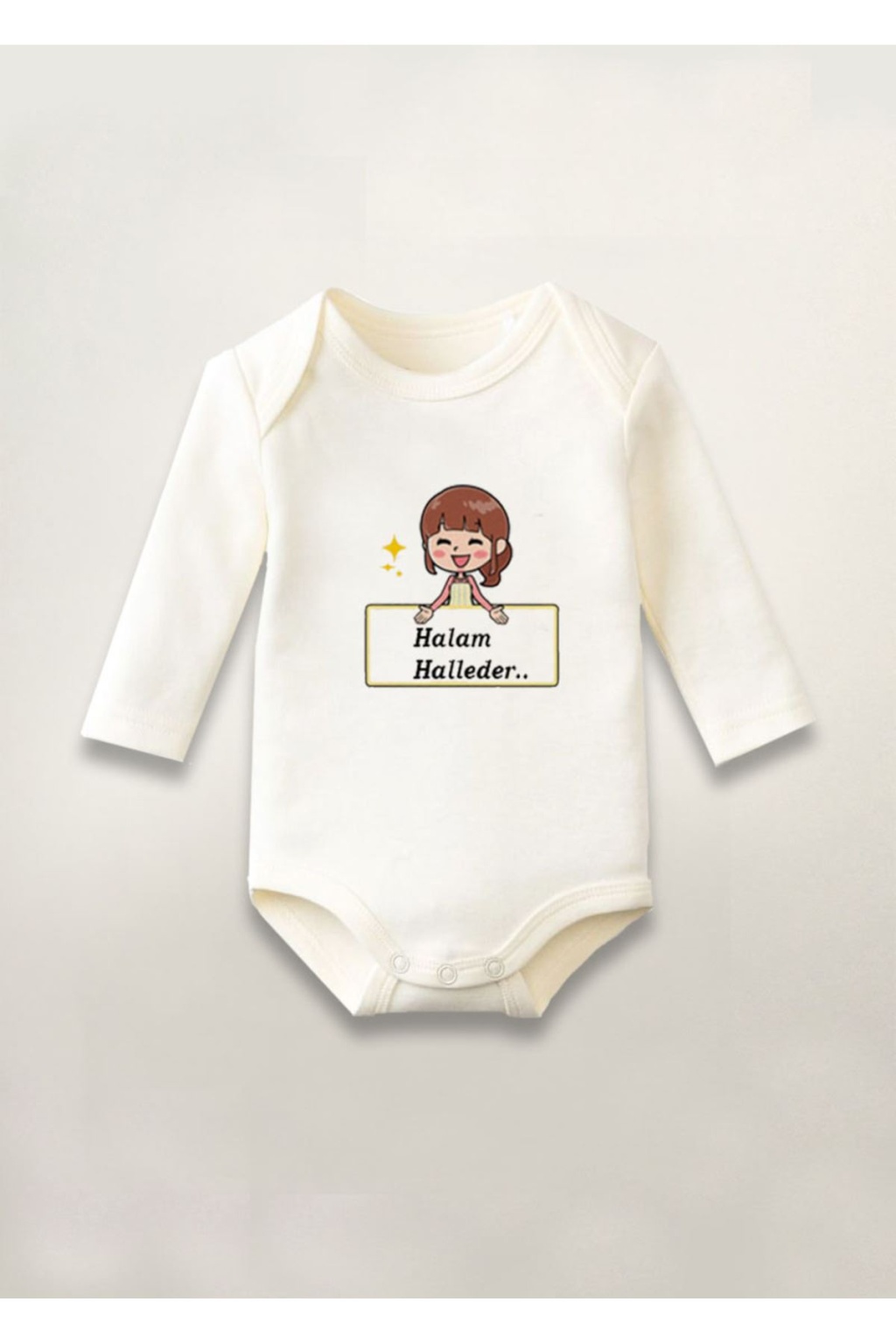 Halam Halleder Baskılı Pamuklu Uzun Kollu Çıtçıtlı Bebek Body Zıbın Atlet Tulum