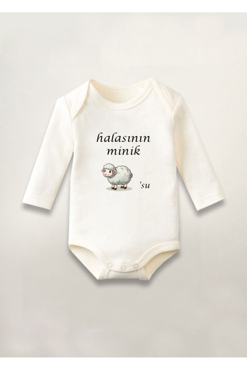 Halasının Minik Kuzusu Baskılı Pamuklu Uzun Kollu Çıtçıtlı Bebek Body Zıbın Atlet Tulum