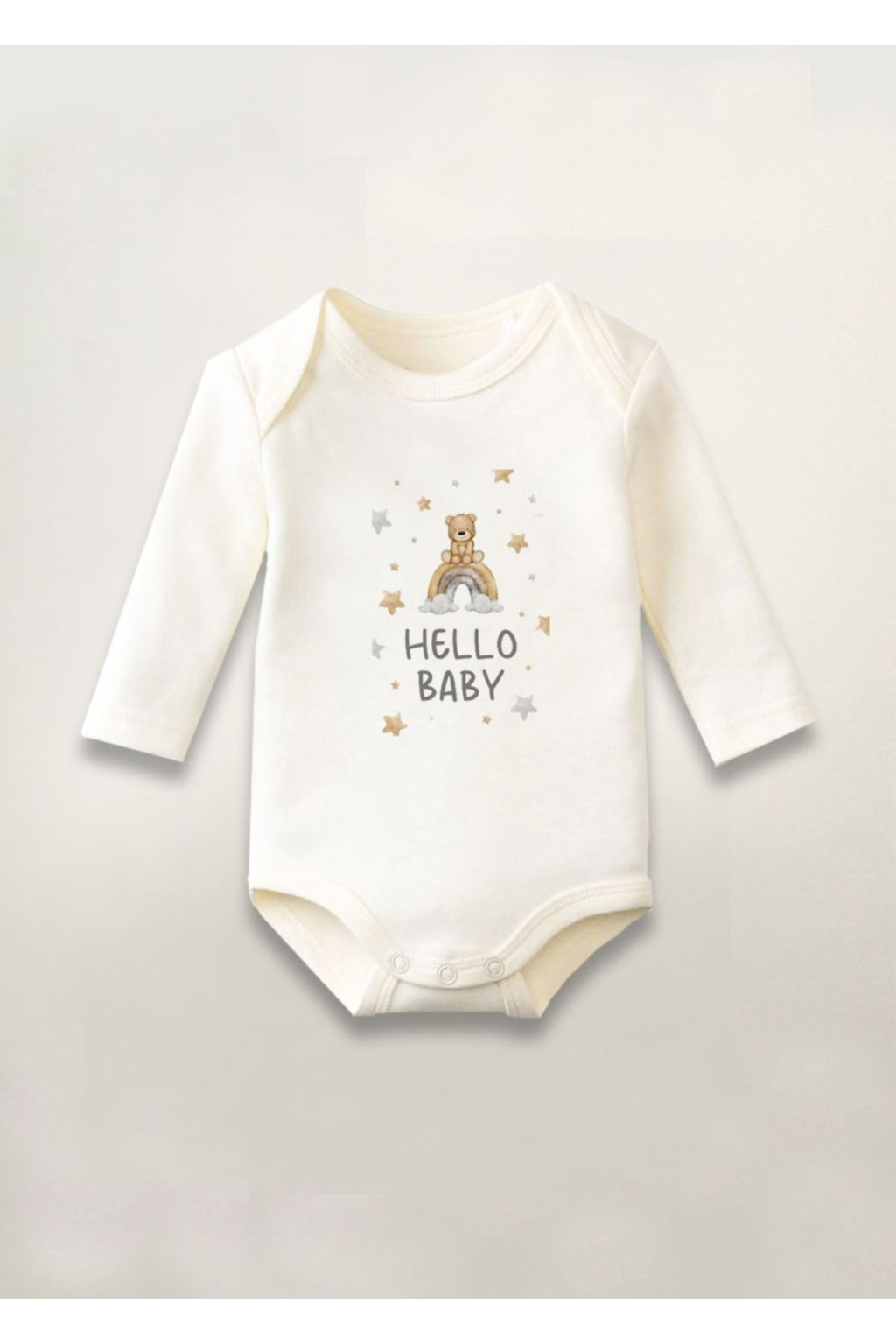 Hello Baby Baskılı Pamuklu Uzun Kollu Çıtçıtlı Bebek Body Zıbın Atlet Tulum