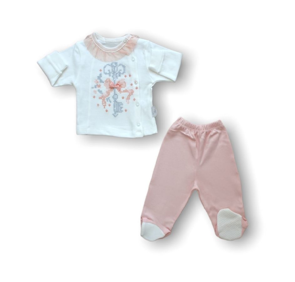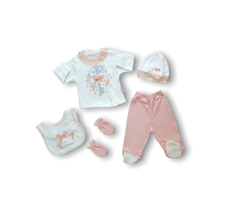 Kanaviçe Nakışlı %100 Cotton Antibakteriyel 5li Zıbın Takımı Hastane Çıkışı