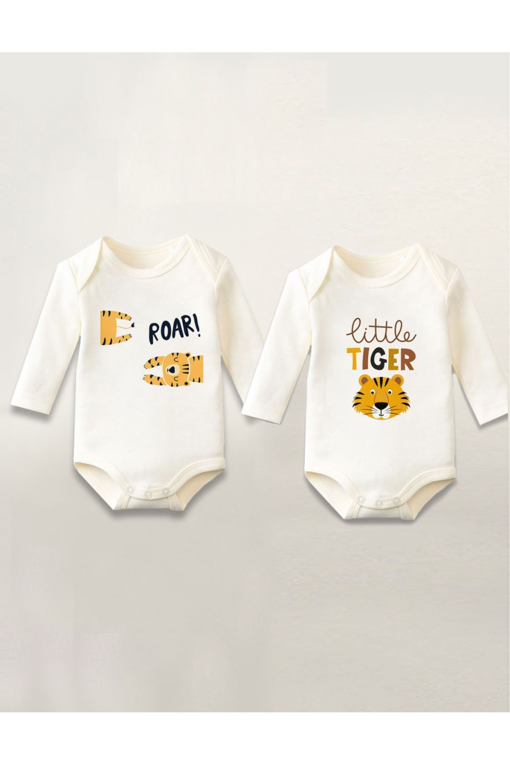Kaplan Tiger Baskılı 2'li Pamuklu Uzun Kollu Çıtçıtlı Bebek Body Zıbın Atlet Tulum