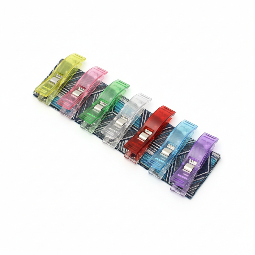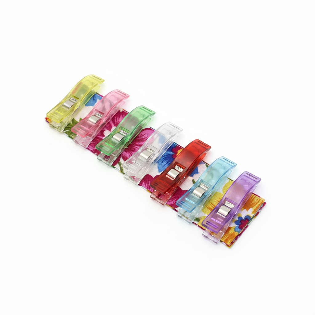Dikiş Sırasında Kumaşı Sabitleme: Kumaş mandalları, dikiş sırasında kumaşı sabitlemek ve kumaşın yanlış yerleşmesini önlemek için kullanılabilir. Özellikle kıvrımlı veya düzensiz kenarlara sahip kumaşlarla çalışırken faydalıdırlar.