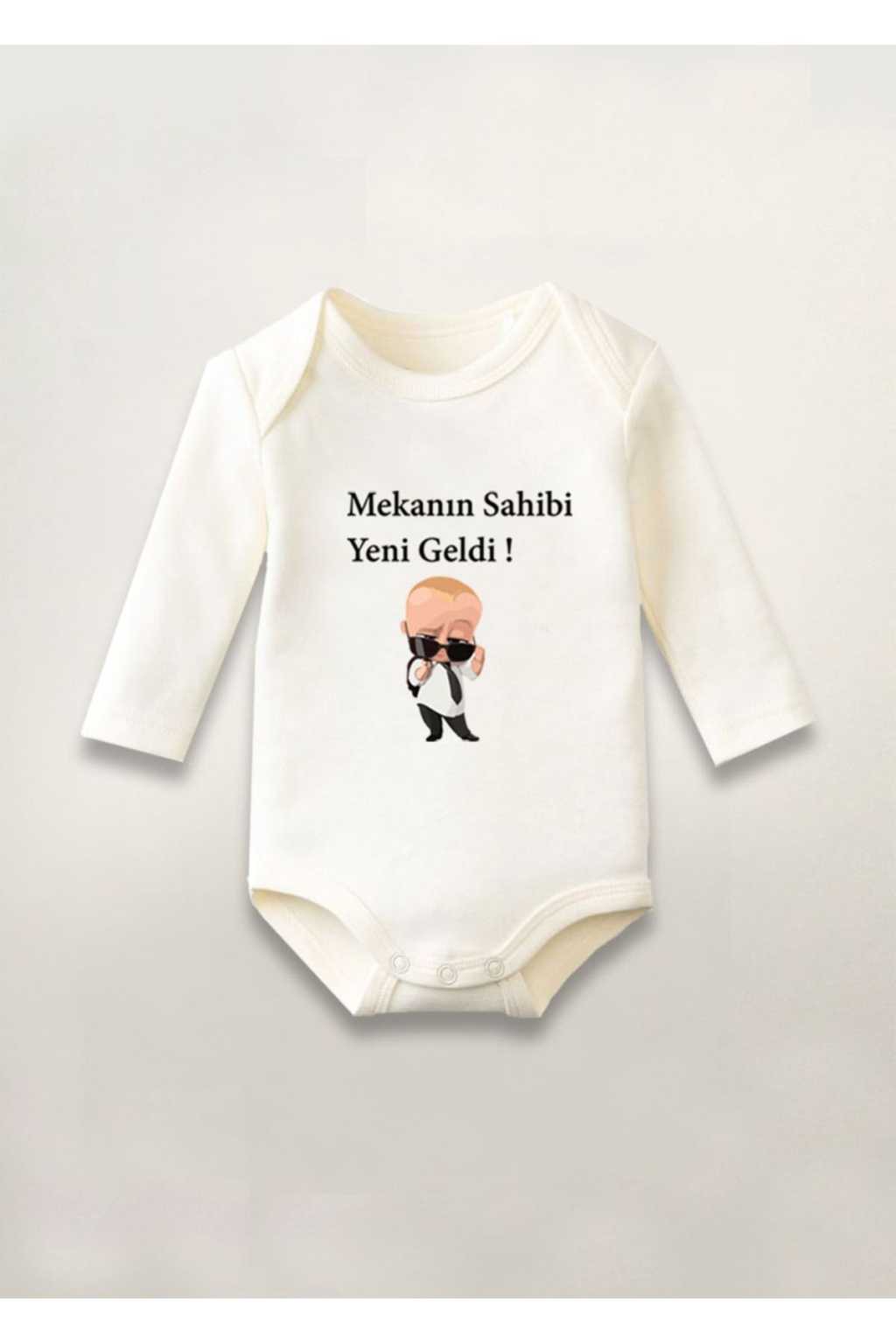 Mekanın Sahibi Yeni Geldi Baskılı Pamuklu Uzun Kollu Çıtçıtlı Bebek Body Zıbın Atlet Tulum