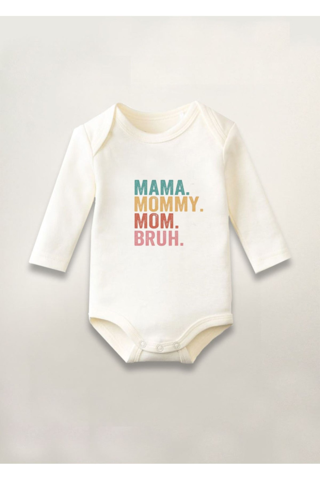 Mom Mama Bruh Baskılı Pamuklu Uzun Kollu Çıtçıtlı Bebek Body Zıbın Atlet Tulum
