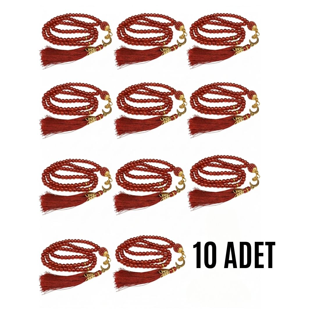 Namaz Tesbihi Vavlı 99'lu Cam İncili Ayet-el Kürsi Dua Kartı ile Bordo Renk Hediyelik 10 Adet