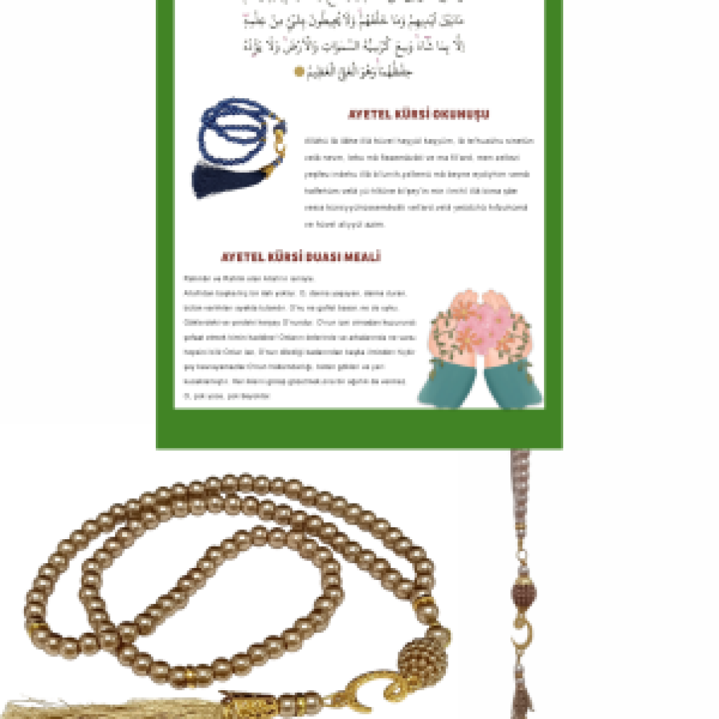 Namaz Tesbihi Vavlı 99'lu Cam İncili Ayet-el Kürsi Dua Kartı ile Süt Kahve Renk Hediyelik