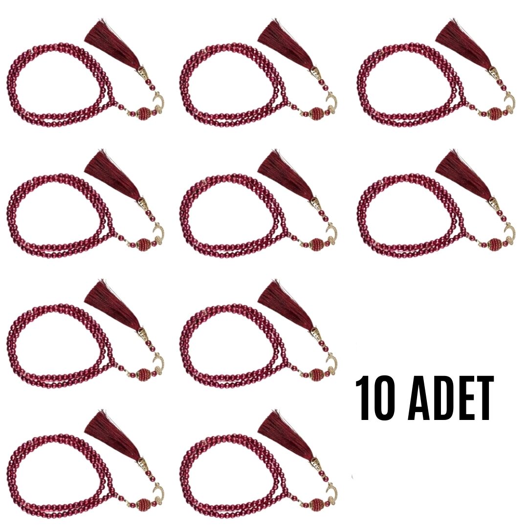 Namaz Tesbihi Vavlı 99'lu Cam İncili Esma'ul Hüsna Dua Kartı ile Fuşya Renk Hediyelik 10 Adet