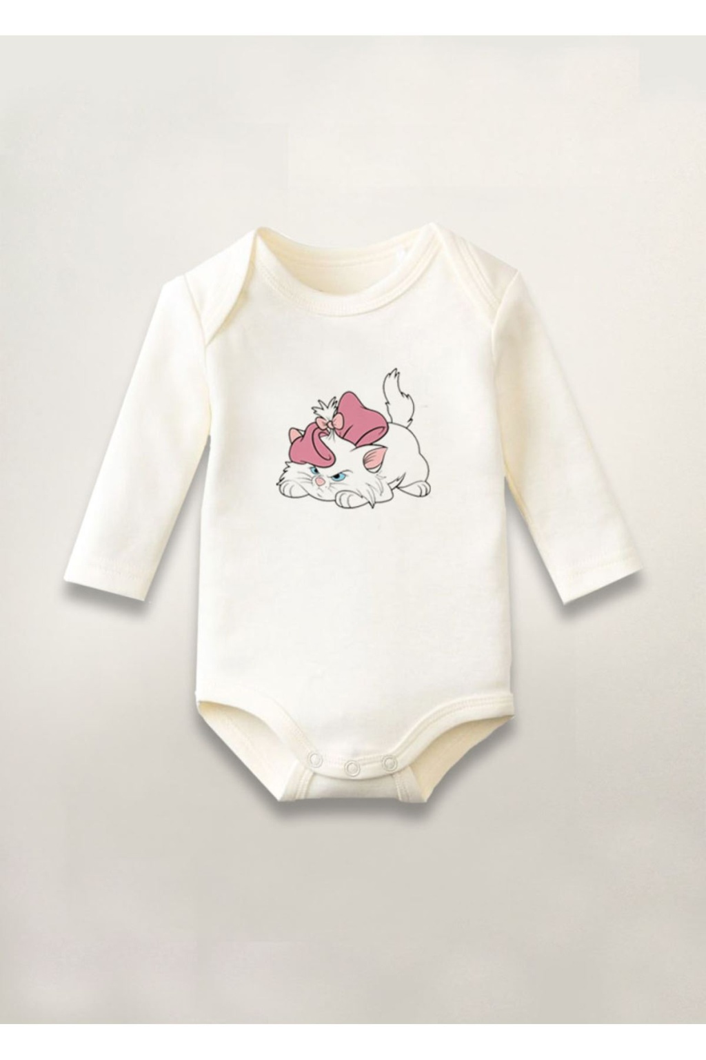 Pembe Kurdaleli Kedi Baskılı Pamuklu Uzun Kollu Çıtçıtlı Bebek Body Zıbın Atlet Tulum