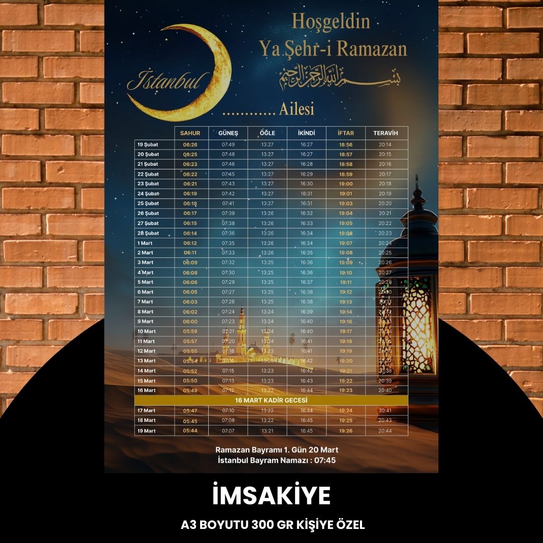 Ramazan İmsakiyesi - 300 gr - A3 Boyut Kişiye Özel İsimli & Logolu 1 Adet Çöl