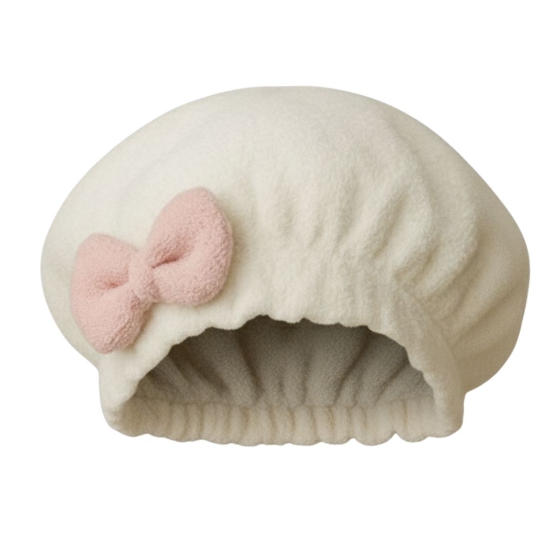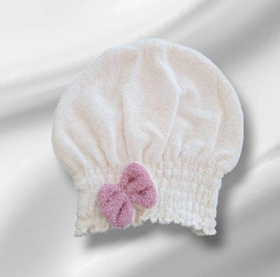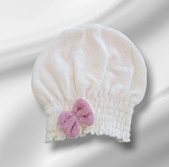 Saç Kurulama Banyo Duş Bonesi – %100 Pamuk , Fiyonklu Beyaz