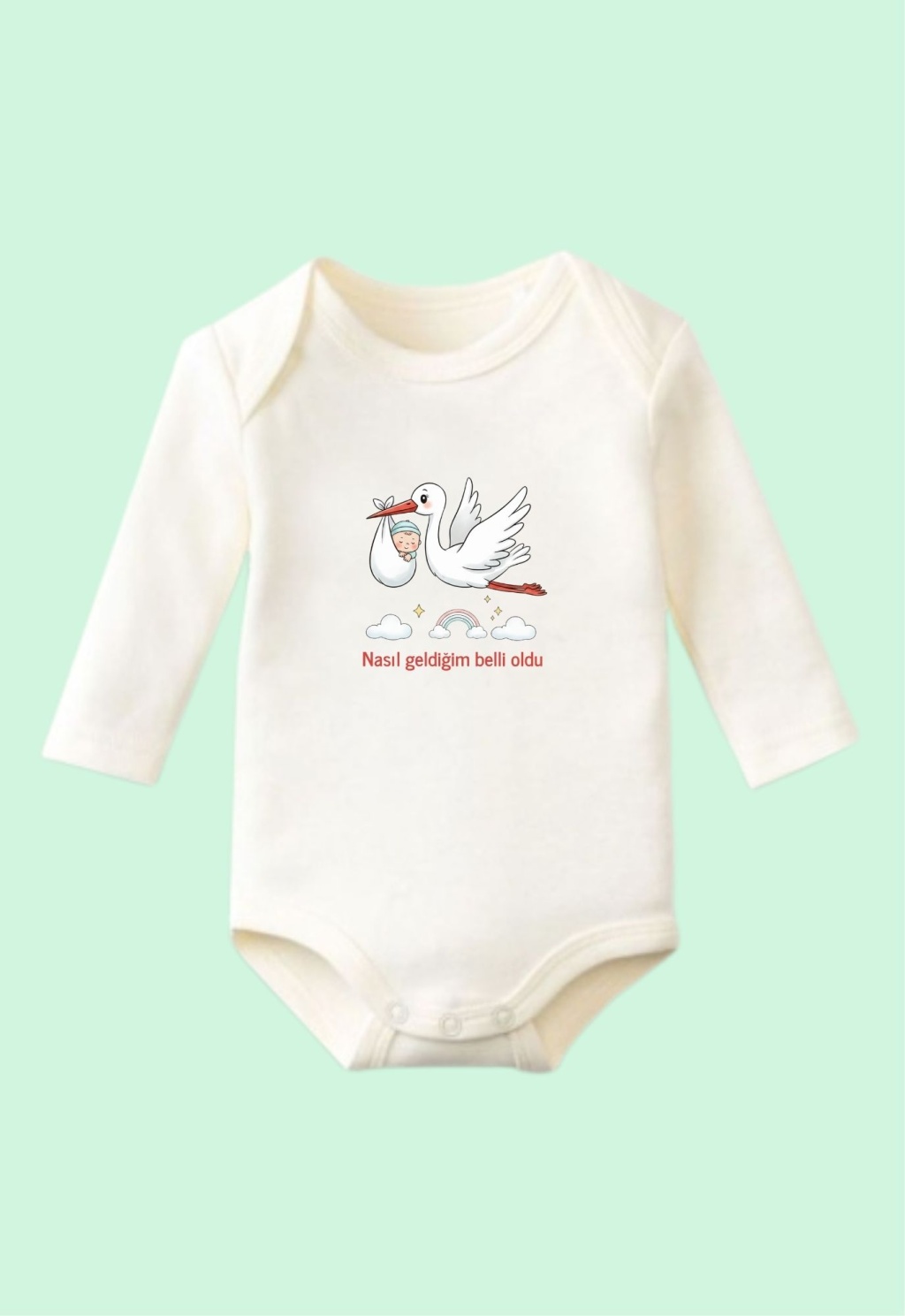 Unisex Bebek Body Leylekli Tasarımlı Pamuklu Beyaz
