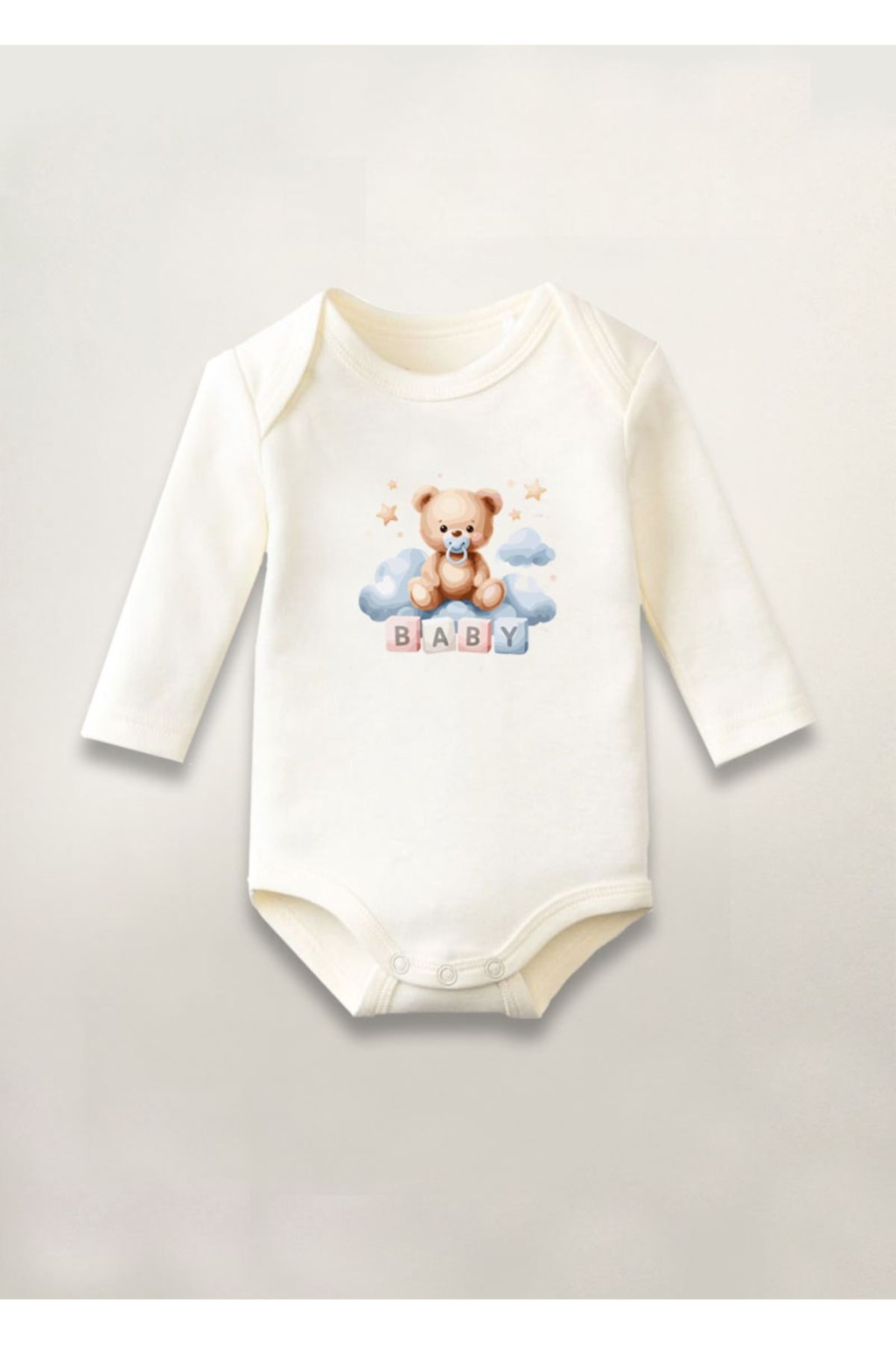 Sevimli Ayıcık Baskılı Pamuklu Uzun Kollu Çıtçıtlı Bebek Body Zıbın Atlet Tulum