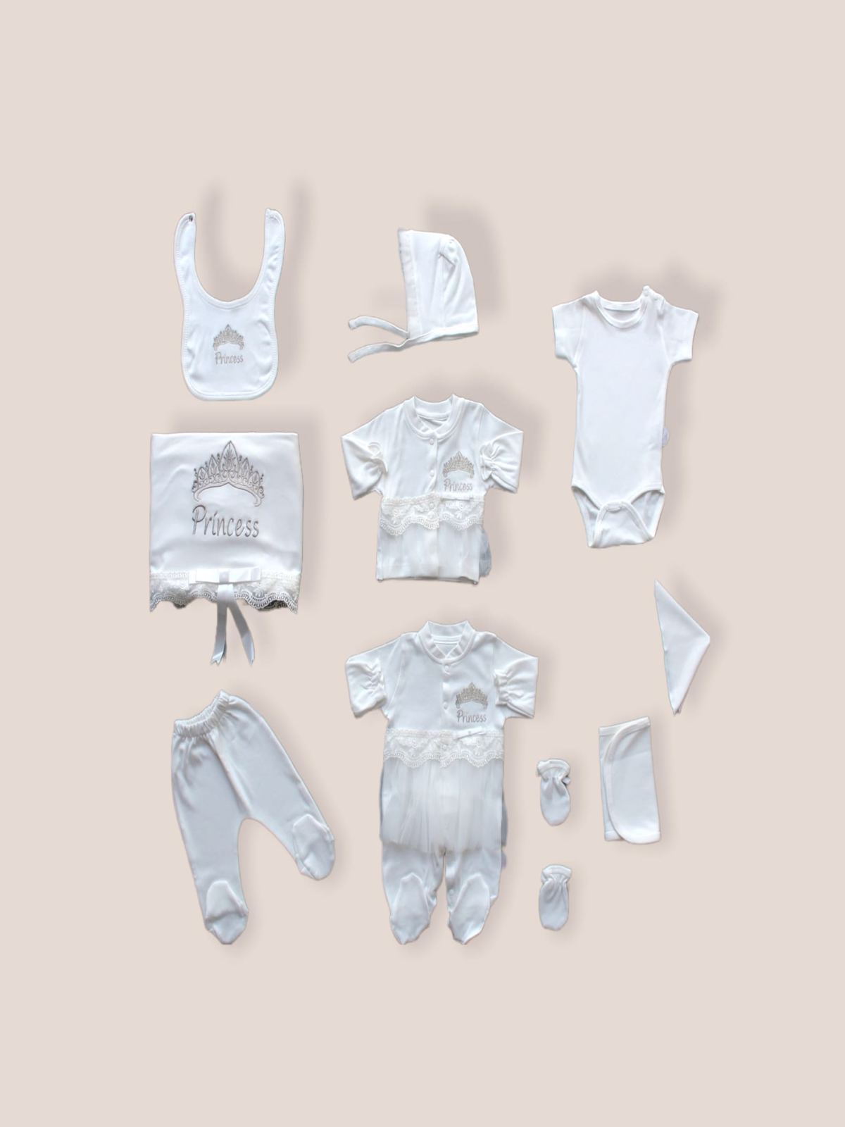 Taçlı Prensesim Nakışlı %100 Cotton Antibakteriyel 10lu Zıbın Takımı Hastane Çıkışı
