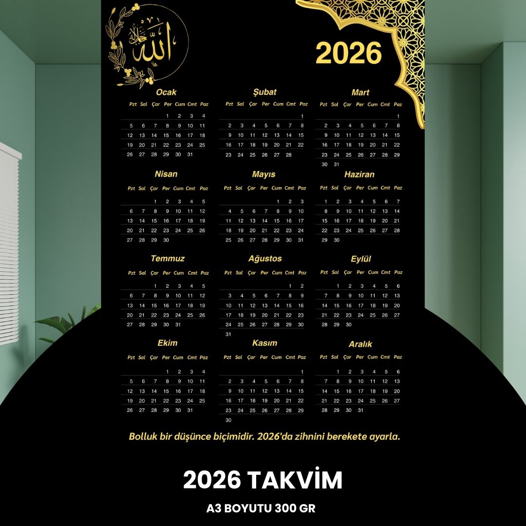 Takvim 2026 Premium A3 300 gr Dijital Baskı Altın