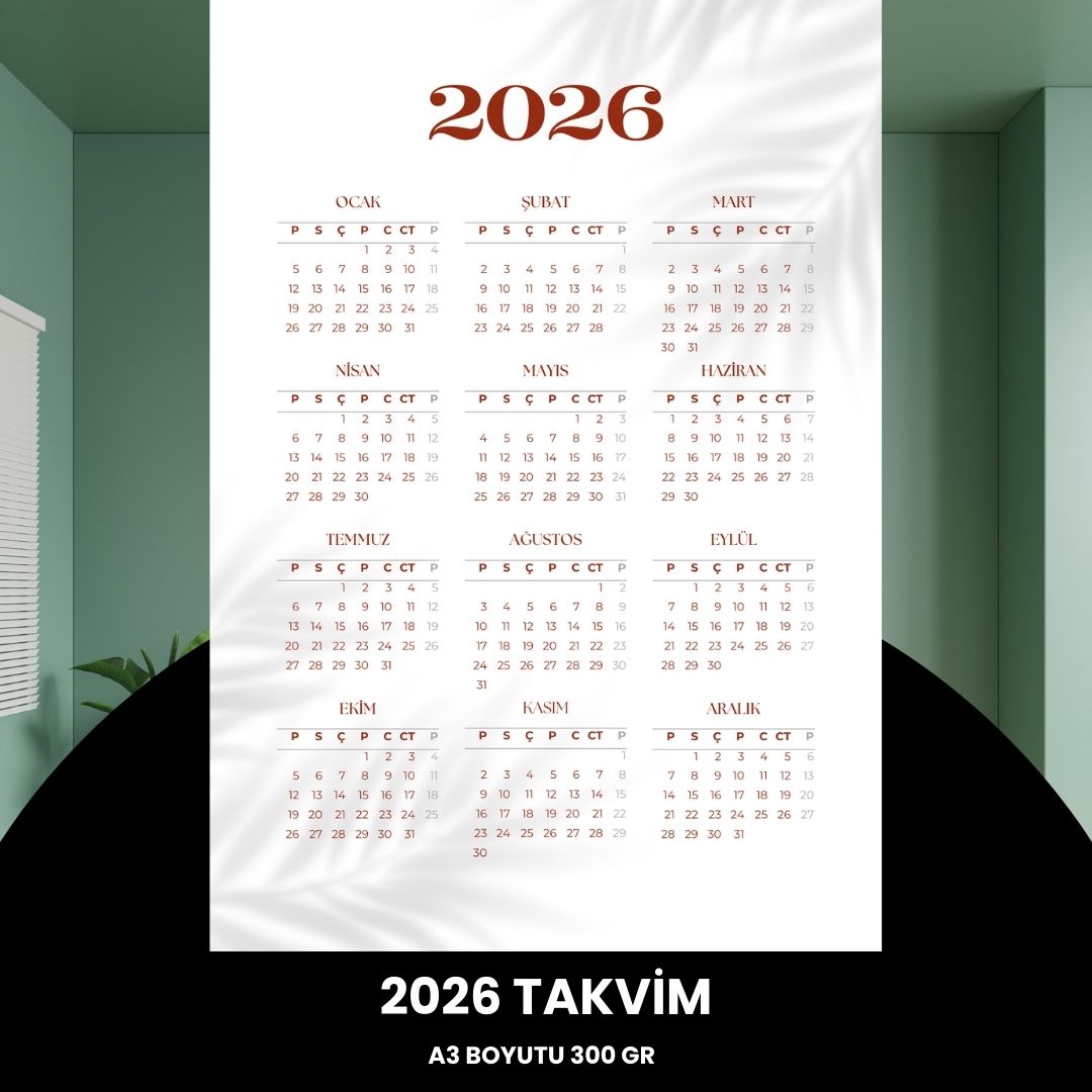 Ürün Açıklaması: 2026 yılınızı en sade ve şık haliyle planlayın. Yüksek gramajlı 300 gr. mat kuşe kağıt üzerine basılan bu takvim, hem profesyonel ofis ortamlarına hem de ev dekorasyonunuza mükemmel uyum sağlar. Kağıt Kalitesi: 300 gr. kalın yapısı sayesinde sayfalarda kıvrılma yapmaz, tok bir duruş sergiler. Yüzey Özelliği: Üzerine not alınabilir mat yüzey; kurşun, tükenmez veya jel kalemlerle dağılma yapmadan yazım imkanı sunar. Boyut: Standart A4 (21 x 29,7 cm) boyutuyla her alana uygun. Kullanım: İster duvara asın, ister masanızda altlık olarak kullanın. Minimalist çizgileriyle göz yormaz, odaklanmanızı sağlar.