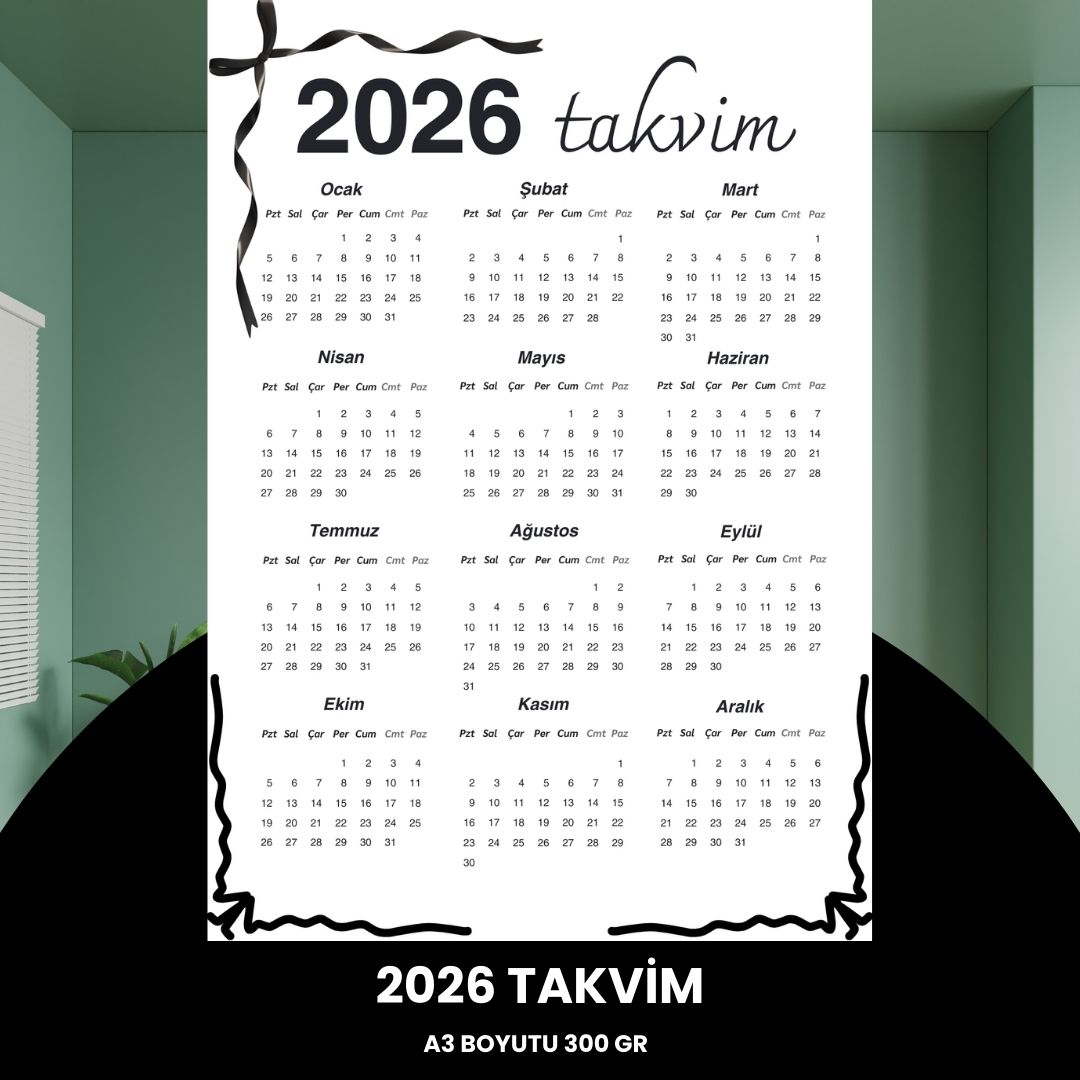 Takvim 2026 Premium A3 300 gr Dijital Baskı Siyah Kurdele