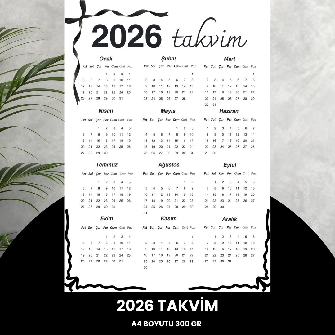Takvim 2026 Premium A4 300 gr Dijital Baskı Siyah Kurdele